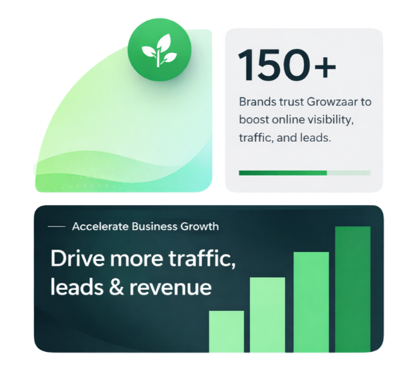 Growzaar is a full-service digital marketing agency focused on helping businesses build visibility, attract the right audience, and convert traffic into real customers. We deliver customized digital solutions that align with your business goals and market needs.